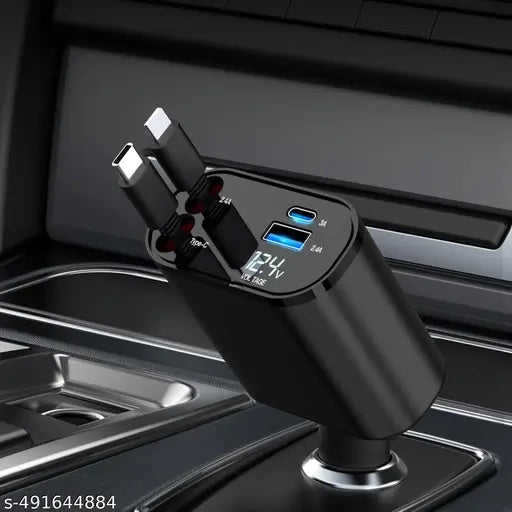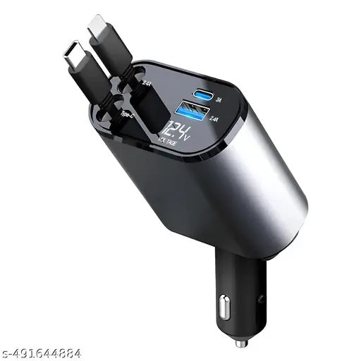 Power up on the go with the SwiftCharge™ 180° Dual Car Charger. Designed for convenience and speed, this sleek car charger features dual fast-charging USB ports, a digital voltage display, and built-in Type-C and Lightning cables. Its 180° rotatable head makes it easy to plug in devices from any angle, keeping your car neat and cables tangle-free. Ideal for long drives, daily commutes, or road trips—charge two devices simultaneously and stay fully powered wherever you travel.